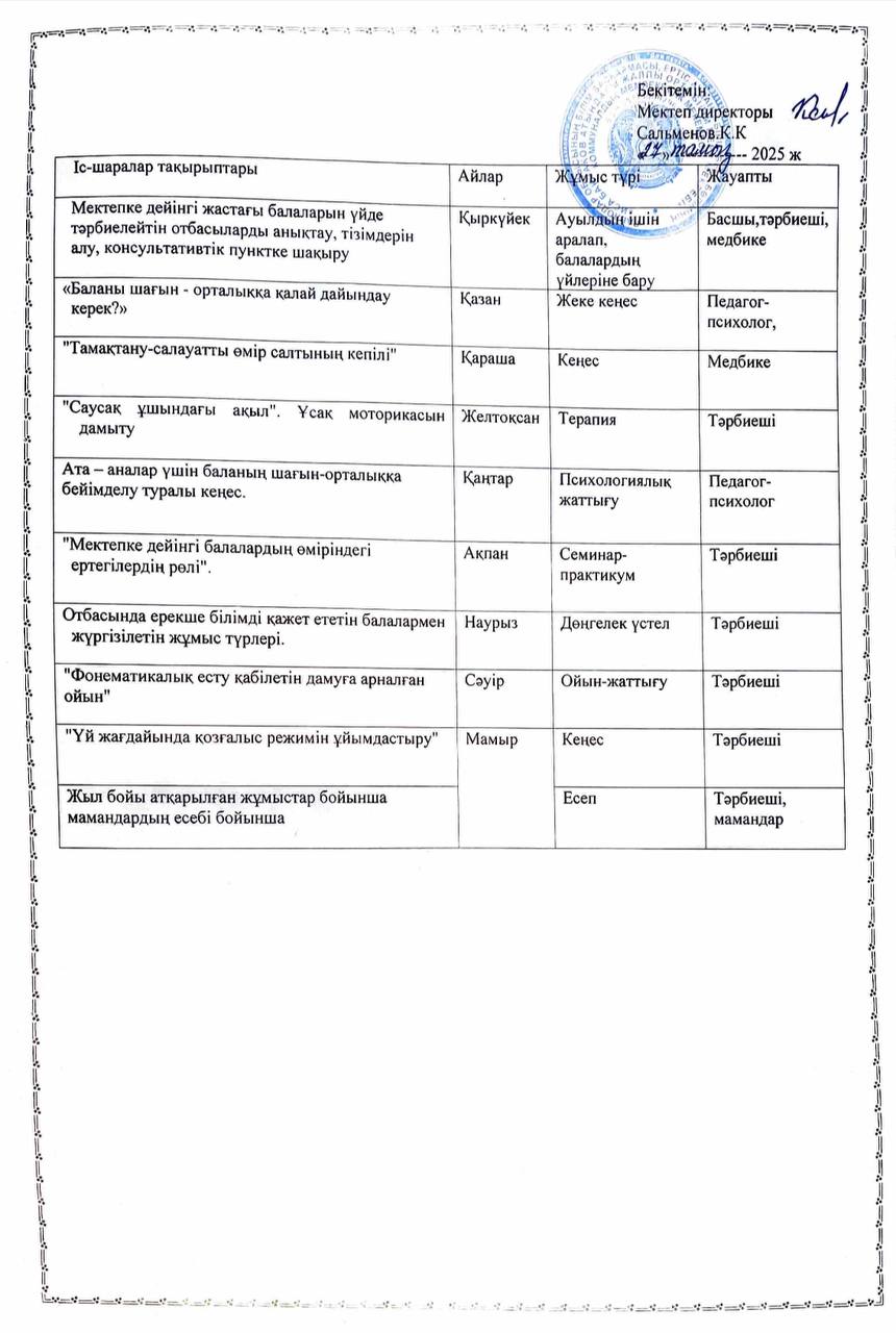 Кеңес беру пунктінің 2025-2026 оқу жылына арналған жұмыс жоспары